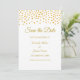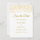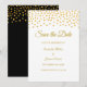 Carte d'invitation de mariage à date fixe avec confettis métallisés or élégants sur fond noir et blanc. Cartes de mariage à date fixe luxe avec confettis dorés sur fond noir et blanc.