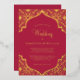 Un Faire-part de mariage en feuille véritable doré encadré et magenta rouge élégant et moderne. Personnalisez simplement ceci avec vos propres noms de mariage et détails pour le faire pour votre propre journée spéciale.