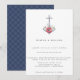 Belle ancre enjolivée de fleurs aquarelles avec un motif de noeud marin bleu marine, invitation de mariage sur le thème nautique.