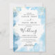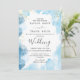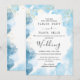 Cette élégante invitation de mariage présente un lavis d'aquarelle bleu doux, créant un fond serein et artistique—idéal pour les mariages côtiers, de plage ou modernes. Le design fluide ajoute une touche de sophistication calme. Entièrement personnalisable avec vos détails de mariage.