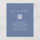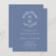 Faire-part de mariage à monogramme en code QR tout-en-un, couronne botanique bleue poussiéreuse... Notre invitation de mariage minimaliste tendance et abordable, bleue poussiéreuse et gris-bleu clair, présente une couronne botanique feuillue affichant les initiales du monogramme de la mariée et du marié au-dessus du texte d'invitation personnalisé en typographie serif et sans serif pour une invitation de mariage simple et chic. Le verso de l'invitation affiche également le code QR de votre site web de mariage ainsi que l'URL du site lui-même, permettant à vos invités de répondre facilement en ligne et de consulter tous les détails normalement envoyés dans un paquet de mariage. Le modèle graphique de code QR exemple et tout le texte exemple peuvent être facilement révisés avec vos propres informations sur le modèle de personnalisation.