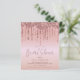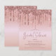 Une alternative en papier économique. Les enveloppes sont en supplément facultatif. De fausses gouttes de Glitter rose gold glamour bordent le bord supérieur des deux côtés. « Bridal Shower » est écrit dans une police moderne et élégante dans une teinte coordonnée et le reste du texte peut être facilement personnalisé.