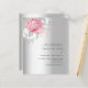 Un fond d'apparence argentée fausse. Décoré de roses roses et blanches. Personnalisez et ajoutez vos noms et détails de mariage.