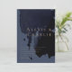 Une invitation de mariage avec un fond lavis aquarelle abstrait bleu marine et noir. Cette invitation de mariage minimaliste est parfaite pour un thème de mariage moderne. Les textes dorés accentuent parfaitement le fond bleu marine.