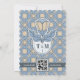 Rendez la planification de votre mariage transparente avec cette élégante invitation Art nouveau qui présente un code QR fonctionnel au dos pour une réponse numérique facile ou un accès au site Web. Le design met en valeur un motif floral sophistiqué bleu poussiéreux et crème avec un bord festonné classique.