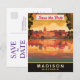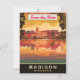 Mettez en valeur le charme pittoresque au bord du lac de l'État du Badger avec cette skyline historique et vibrante. Cet art touristique classique de haute qualité est parfait pour un mariage élégant dans le Midwest ou une carte de pré-réservation pour Madison.