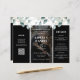Invitation de mariage triptyque recto-verso avec code QR à scanner pour RSVP en ligne et détails, avec typographie moderne élégante et monogramme de feuillage d'eucalyptus vert sauge, abordable et tout-en-un. +++++++++ Facile à personnaliser avec vos informations et 1 ou 2 photos de fiançailles.