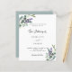 Un fond blanc élégant sur le devant. Décoré de fleurs d'eucalyptus et de lavande. Personnalisez et ajoutez vos noms et détails.