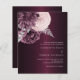 Un fond bordeaux profond décoré de fleurs bordeaux et roses, de fleurs et de feuillage faux argent. Personnalisez et ajoutez vos noms et les détails du mariage. 1 feuille = 1 invite imprimé bord à bord.