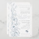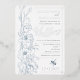 Cette invitation de mariage présente une illustration florale subtile et fluide dans des tons de bleu poussiéreux sur un fond blanc pur, créant un look intemporel et luxueux. La police de caractères élégante associée à un texte serif classique trouve un équilibre entre romance moderne et sophistication raffinée. Des accents métalliques délicats et une abeille doucement illustrée ajoutent une touche fantaisiste et haut de gamme, parfaite pour les mariages en soirée ou les événements formels avec une touche romantique et botanique.