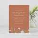 Définissez le ton de votre grand jour avec cette belle invitation de mariage Terracotta Boho Wildflower. Sur un fond de terracotta, des fleurs sauvages colorées sont disposées de manière charmante, évoquant la beauté de la nature et la liberté du grand air. La police moderne boho complète parfaitement le design fantaisiste, faisant de cette invitation le choix idéal pour tout couple branché et romantique.
