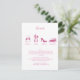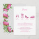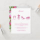 Carte de détails coordonnant les pivoines, peinte et détaillée. Impression de jardin, botanique, nature. Carte de détails avec des verres à vin pour trinquer, couverts pour le dîner, chaussure pour danser et voiture ancienne pour les adieux !