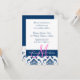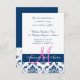 Un élégant monogramme et une conception de noms avec un motif damassé bleu marine et blanc créent ces jolies cartes de réception de mariage qui correspondent à "l'Invitation de Mariage avec Photo et Monogramme sur Fond Damassé Bleu". Vous pouvez utiliser ces cartes de réception pour ajouter toutes les informations de votre réception, y compris utiliser le verso de la carte pour les directions, les informations d'hôtel ou pour ajouter une carte. Conception et mise en page par Elke Clarke ©2010 pour Monogram Gallery. Personnalisez avec vos noms, monogramme et texte de RSVP de mariage. Pour plus d'options de modification, sélectionnez "PERSONNALISER" pour modifier l'espacement, l'arrière-plan, la couleur et le style de police. Le damassé et la photo sont sous licence d'utilisation.