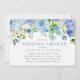 Notre invitation de douche de mariée avec des fleurs d'hydrangea aquarelle bleu pastel, des fleurs de lavande et des feuilles.