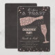 Invitation de fête de dîner de fiançailles avec verre à vin diamant or rose et tableau noir à la craie avec confettis