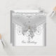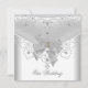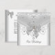 Invitation de mariage blanche avec superposition argentée et nœud bijou pour fête, anniversaire, célébration. Personnalisez avec vos propres détails.