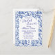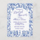 Personnalisez cette belle invitation de mariage bleu et blanc en chinoiserie.