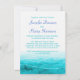 Belle mer peinte en bleu avec vagues graphiques scintillant faire-part de mariage de superposition. Une belle plage, côtière inspiré de l'océan, contemporain, faire-part de mariage avec une mer stylisée, main couleur de l'eau, sur l'arrière - plan blanc. Parfait pour un mariage nautique moderne sur la plage, l'océan ou le bateau. Modifiez cette invitation avec vos propres mots. Unique conçu et peint par Sarah Trett.