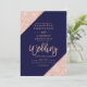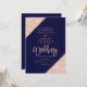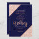 Typographie de bloc de couleur de paillettes d'or rose sur un mariage chic personnalisable de rayures géométriques bleu marine et faux or rose, parfait pour un mariage élégant et luxueux,