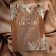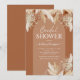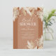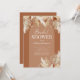 Cartes d'invitation de mariage rustique bohème avec un fond en terre cuite avec une arche, feuilles de palmier séchées peintes à l'aquarelle, herbe de la pampa, et un modèle élégant pour la mariée facile à personnaliser.