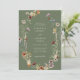 Invitation de mariage bohème verte. Cette invitation de mariage élégante et stylée présente de magnifiques fleurs sauvages peintes à la main à l'aquarelle, disposées en une couronne charmante parfaite pour les mariages de printemps, d'été ou d'automne. Trouvez des articles assortis dans la collection de mariage aux fleurs sauvages bohèmes vert sauge.