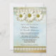 Faire-part de mariage avec marguerites blanches sur un arrière - plan peint rustique avec bois et dentelle. Belle pour un mariage extérieur ou d'été.