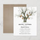 Cartons d'invitation de mariage champêtre rustique à petit prix représentant un tronc de chêne à l'aquarelle, un cœur sculpté avec les initiales du couple, des lanternes anciennes et un modèle élégant pour la suite de la mariée.