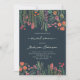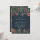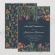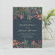 Moderne boho fleurs sauvages lumineuses douche de mariée bohémienne. Caractéristiques teintes roses, pêche et vert sauge fleurs botaniques inspirées par les fleurs sauvages et les jardins rustiques aquarelle avec une verdure subtile et une typographie moderne boho sur fond bleu foncé.
