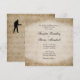 Un beau design pour un mariage sur le thème musical. Mettez les noms des enfants sur le devant pour rendre cela moins formel et à l'intérieur, les informations de mariage régulières ou habituelles. La teinte sépia donne à cette partition élégante remplie de notes et un look antique.