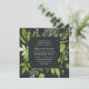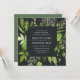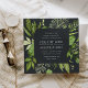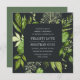 Notre invitation de mariage de Midnight Garden dans un format carré unique encadre vos détails mariages avec une aquarelle peinte verdure dans des tons luxuriants de vert printemps, d'olive et de fougère. Un choix moderne mais bio pour les mariages du printemps ou de l'été avec des feuilles verts frais dans la couleur de l'année 2017, sur un élégant arrière - plan foncé.