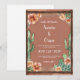 Donnez le ton pour votre journée spéciale avec nos Invitations de mariage Wild West Boho. Alliant parfaitement charme rustique et élégance bohème, ces invitations captent l'essence d'une fête libre. Le design présente des motifs complexes de flore désertique et des éléments occidentaux vintages, magnifiquement illustrés pour évoquer l'esprit d'aventure et de romantisme. Imprimée sur des cartons de haute qualité, chaque invitation rayonne de chaleur et d'authenticité, invitant vos invités à se joindre à vous dans un voyage d'amour sous le ciel ouvert. Personnalisez vos invitations avec vos noms et détails mariages pour créer un souvenir unique qui reflète votre style individuel et le jour inoubliable à venir.
