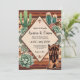 Donnez le ton pour votre journée spéciale avec nos Invitations de mariage Wild West Boho. Alliant parfaitement charme rustique et élégance bohème, ces invitations captent l'essence d'une fête libre. Le design présente des motifs complexes de flore désertique et des éléments occidentaux vintages, magnifiquement illustrés pour évoquer l'esprit d'aventure et de romantisme. Imprimée sur des cartons de haute qualité, chaque invitation rayonne de chaleur et d'authenticité, invitant vos invités à se joindre à vous dans un voyage d'amour sous le ciel ouvert. Personnalisez vos invitations avec vos noms et détails mariages pour créer un souvenir unique qui reflète votre style individuel et le jour inoubliable à venir.