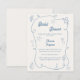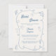 Une invitation de mariage de style dessiné à la main avec un thème de plage, de bord de mer. Un fond de couleur ivoire doux, des éléments bleus côtiers poussiéreux. Personnalisez et ajoutez son nom et les détails.