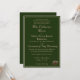 Le design de l'invitation de mariage catholique d'hiver présente le format traditionnel d'un mariage catholique, encadré d'une élégante bordure dorée. Le texte est affiché dans la même couleur or. L'image de deux pinecones dépoli est affichée en bas à droite pour ajouter cette touche d'hiver. La même image apparaît également à l'arrière. L'Arrière - plan est de couleur vert foncé. Très formel et élégant. Disponible dans une variété de couleurs et conçu pour coordonner avec la suite catholique de mariage d'hiver.