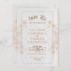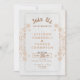 Invitation de mariage dorée et blanche, Elle a un design simple et attractif, Elle a un texte doré et marron, et un fond blanc, Vous pouvez changer et éditer tous les textes. Invitation pour tous les mariages — Je vous souhaite une vie d'amour et de bonheur —