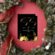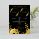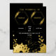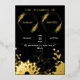 Invitation de mariage élégante noire et dorée à motif feuille d'or. Un cadre doré orné et des ornements décorent un fond noir foncé élégant pour un effet dramatique.