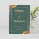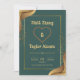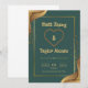 Avec l'élégance du vert royal et la splendeur de l'or luxueux, nous vous invitations à partager avec nous les moments les plus heureux de notre vie le jour de notre mariage. Un moment qui combine amour, luxe et joie, alors que nous commençons ensemble le voyage de la vie dans une atmosphère sophistiquée qui pulsera avec bonheur. Rejoignez-nous pour célébrer cette occasion spéciale, où les couleurs luxueuses rencontrent des sentiments sincères, et la joie est complète avec votre présence avec nous.