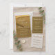Élevez votre jour spécial avec ce luxueux carton d'invitation de mariage en acrylique et miroir doré. Doté d'une finition de miroir doré réfléchissant avec calligraphie gravée, cette élégante suite de mariage comprend l'invitation principale, la carte de réponse et la carte de détails. Conçu dans un style minimaliste moderne, avec des accents d'eucalyptus et des détails rustiques et luxueux, c'est le choix parfait pour des mariages intemporels et sophistiqués. Idéal pour les couples à la recherche d'une invitation unique et haut de gamme pour impressionner les invités.