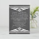Elégante et chic Faire-part de mariage Deco Chalkboard avec une texture chalkboard tendance look arrière - plan et une paire de bordures pivotantes d'ivoire art déco. Cette belle faire-part de mariage est parfaite pour une mariage à thème art déco des années 1920. Facile à customiser, il suffit d'ajouter les détails de votre mariage. Cliquez sur "Customiser" pour trouver d'autres options de personnalisation.