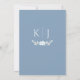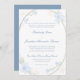 Invitation principale pour la collection de fleurs bleues. Le design évoque le printemps et les débuts avec ses tons pastel. Les aquarelles bleues, les vignes et les feuilles encadrent le texte sur un arrière - plan blanc. Par contre, le dos de la carte est un bleu profond et poussiéreux. Essayez ce design sur les options élégantes du papier, comme le linge de maison ou la perle. Le papier doux améliorera la délicatesse des fleurs. Parfait pour un mariage de jardin ou de printemps.