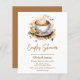 Thème de fête prénuptiale 'L'amour est en train de se préparer' - Invitation de mariage pour couples avec fleurs et café.