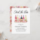 Cartes d'invitation de fête de bachelorette avec une sélection de bouteilles de vin à l'aquarelle, des fleurs roses mignonnes et un modèle de cortège nuptial élégant facile à personnaliser.