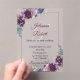 Invitation en acrylique, Taille : 12,7 cm x 17,8 cm, Style : Acrylique transparent, Coins : Arche, Impression : Numérique, Épaisseur : Standard (15 mil), Enveloppes : Aucun