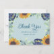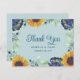 Cette carte de remerciement de mariage présente de jolies fleurs bleues à l'aquarelle, des tournesols et des branches d'eucalyptus sur un fond bleu poussiéreux. Des variations de ce design, différents types de papier (y compris des options économiques), ainsi que des produits coordonnés sont disponibles dans notre boutique, zazzle.com/store/doodlelulu. Contactez-nous si vous avez besoin que ce design soit appliqué à un produit spécifique pour créer votre propre article assorti unique ! Merci beaucoup d'avoir consulté un design DoodleLulu par 2 june bugs !