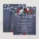 Faire-part de mariage d'hiver à prix abordable, présentant un bouquet floral de roses rouges de Bourgogne et de pivoines blanches avec des branches de sapin vertes de saison, des baies rouges et du feuillage avec des guirlandes de lumières scintillantes sur un fond en bois de grange bleu marine et avec une typographie moderne élégante. ++++++++++++ Personnalisez-le avec vos détails et vos initiales de monogramme / noms de couple au dos ! ++++++++++ Le faire-part est idéal pour les mariages sur le thème de Noël floral rustique d'hiver. ++++++++++ LIRE CECI AVANT D'ACHETER ! Il s'agit d'une carte de mariage à prix abordable imprimée sur une feuille de papier (chaque feuille contient une carte). ++++ Pour le meilleur rapport prix-qualité, notre conseil est de choisir le type de papier Semi-Brillant (il est suffisamment épais pour être utilisé pour la papeterie) ++++ Si vous avez besoin d'enveloppes, choisissez l'OPTION ENVELOPPE. +++ Vérifiez soigneusement toutes les informations et l'orthographe de votre texte car vous recevrez exactement ce que vous voyez - personne d'autre ne vérifiera quoi que ce soit avant l'impression. ++++ Cette carte est conçue pour une taille de 4,5 "x 5