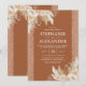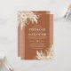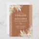Cartes d'invitation de mariage bohème élégantes avec feuilles de palmier séchées aquarellées, herbe de la pampa, fleurs, paillettes de couleur rouille et modèle de mariage moderne.