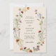 Cette invitation de mariage élégante et stylée présente de magnifiques fleurs sauvages peintes à la main à l'aquarelle, disposées en une charmante couronne avec un motif charmant au dos. Trouvez des articles assortis dans la collection de mariage Tan Boho Wildflower.