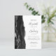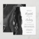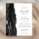 Le bord gauche de cette élégante invitation de mariage moderne présente une bordure d'agate en aquarelle noire rehaussée de faux strass argentés. Le texte personnalisable combine des polices manuscrites, copperplate et italiques en gris charbon sur fond blanc. Le verso présente un design assorti d'agate noir et argent.