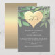 Élégante invitation de mariage grise moderne avec un zoom sur la verdure aquarelle rustique et un cœur en feuille d'or. Choix parfait pour une célébration de mariage virtuel moderne et romantique.