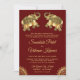 Étonnez vos invités avec cette élégante invitation de mariage indien présentant de beaux éléphants décorés sur un fond rouge foncé. Ajoutez simplement les détails de votre événement sur ce modèle facile à utiliser pour en faire une invitation unique. Cette carte est entièrement personnalisable. Tous les textes sont modifiables et la couleur de fond peut être facilement modifiée pour correspondre à vos préférences. Retournez la carte pour révéler une texture de feuille d'or sur le verso de la carte.